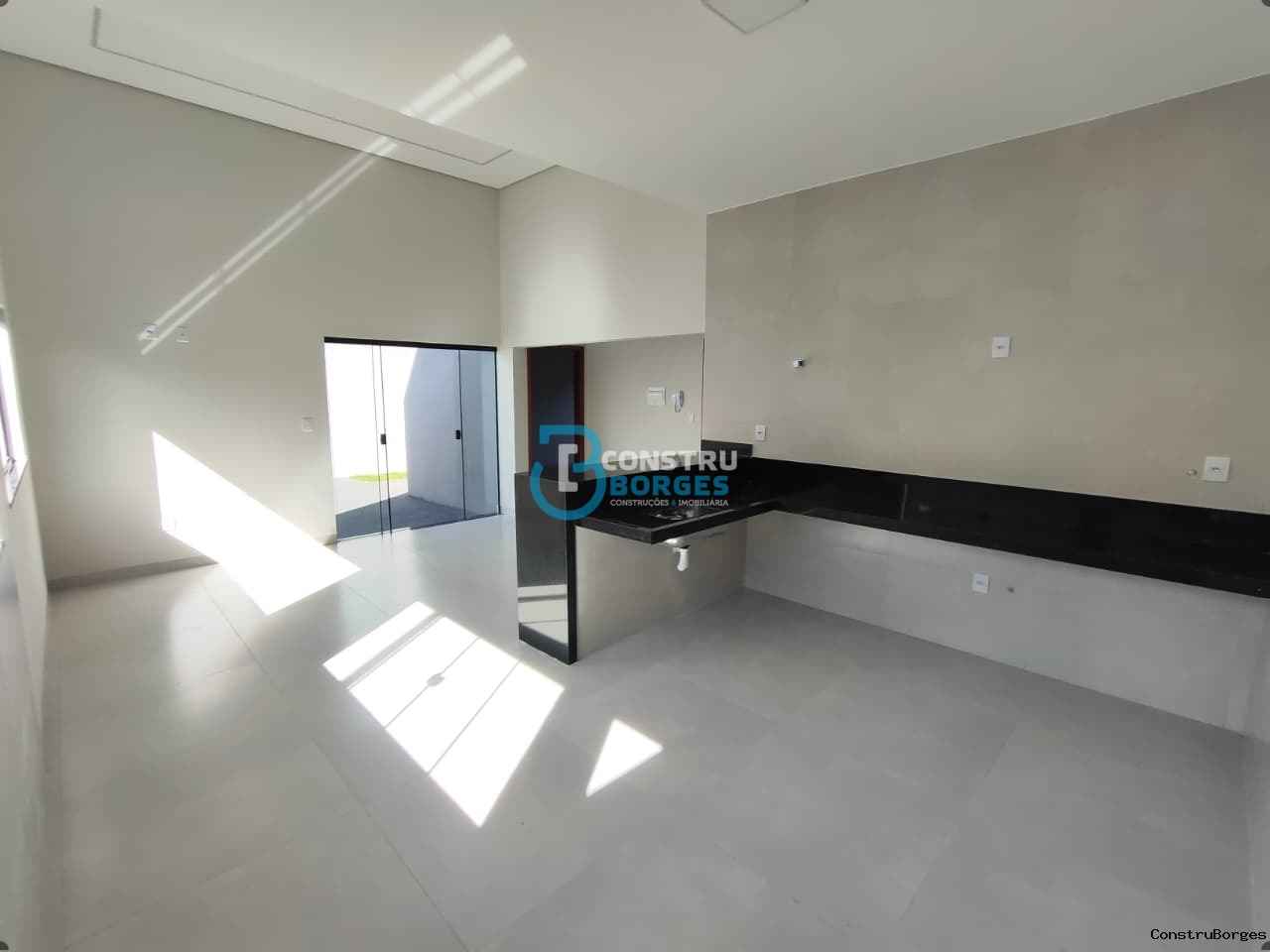 Vende-se casa no Jardins Mônaco com 02 quartos, sendo 01 suíte, banheiro social, sala, copa e cozinha em ambientes integrados, lavanderia e espaço de garagem para 02 veículos, imóvel possui piso porcelanato com rodapés embutidos, sala com pé direito duplo, rebaixamento em gesso e iluminação em perfis de led, bancadas e balcões em granito, janelas em vidro temperado, portas em madeira e vidro temperado.