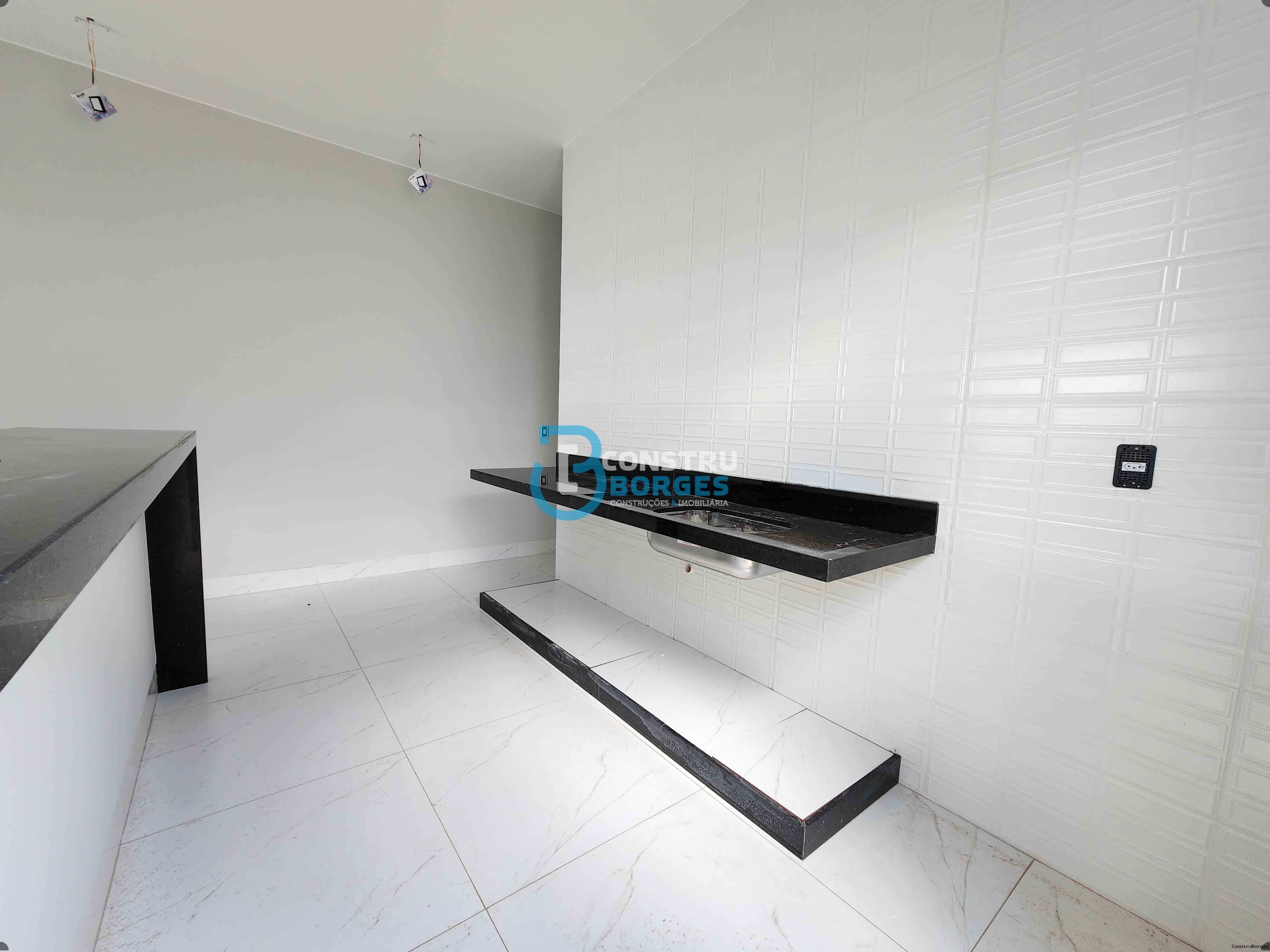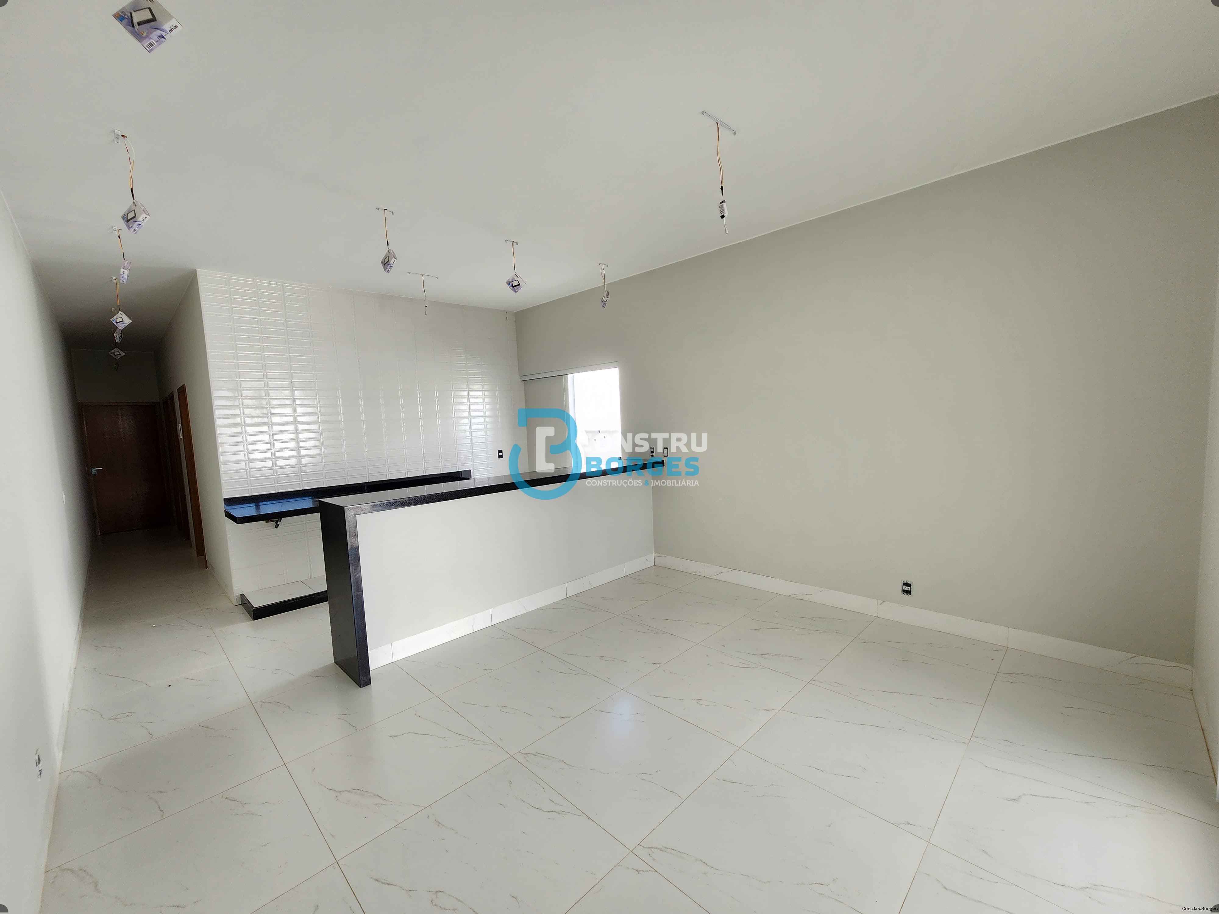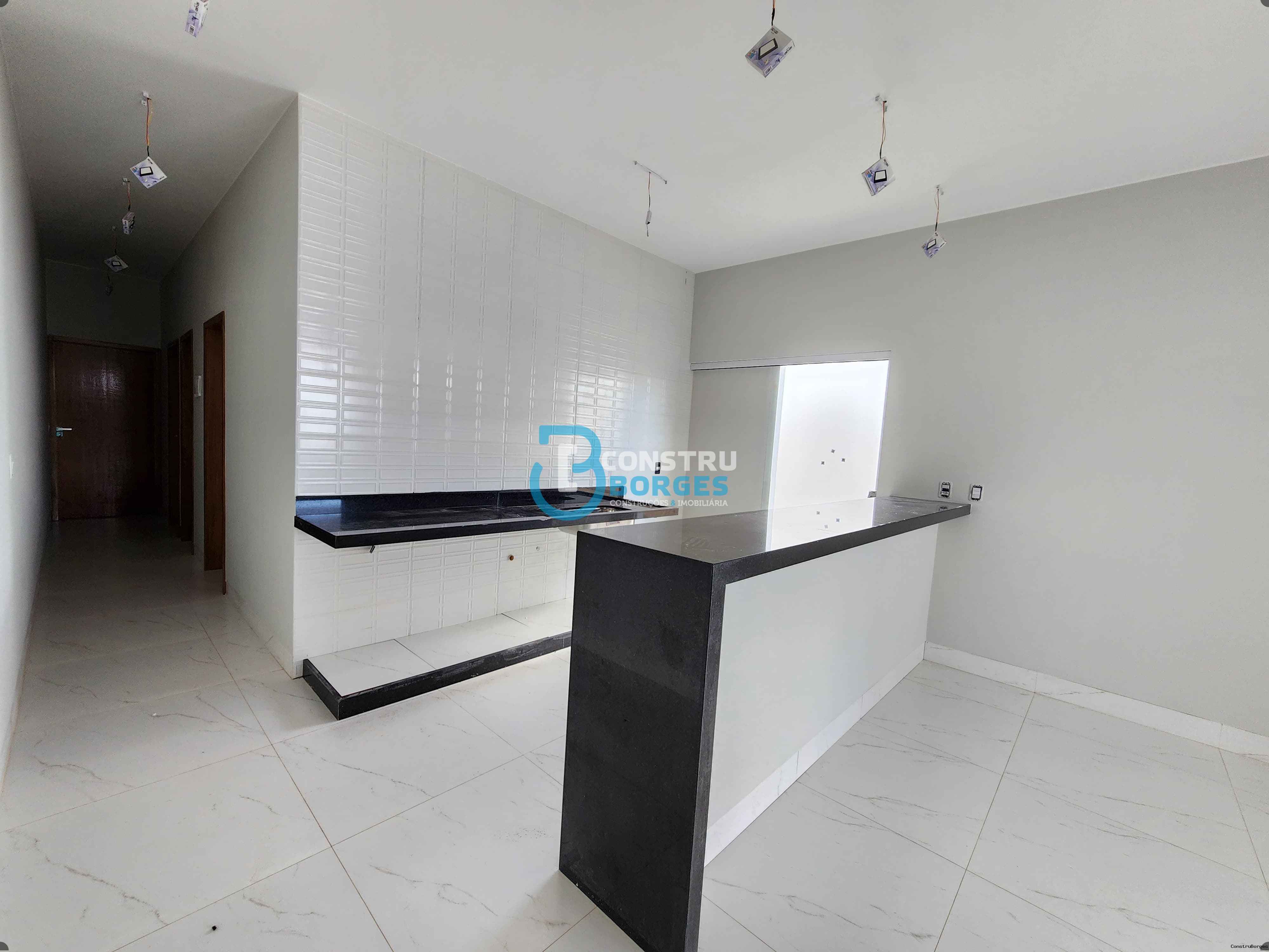 Vende-se casa no bairro Jardins Mônaco, contendo: 3 quartos (sendo 1 suíte), sala e cozinha em conceito aberto, banheiro social, lavanderia, garagem gourmet com vagas para 2 carros cobertos. O imóvel conta com piso grezalato, churrasqueira, janelas venezianas, portas da sala e cozinha em esquadria de alumínio e vidro temperado, balcão em granito banheiros com pia em granito.